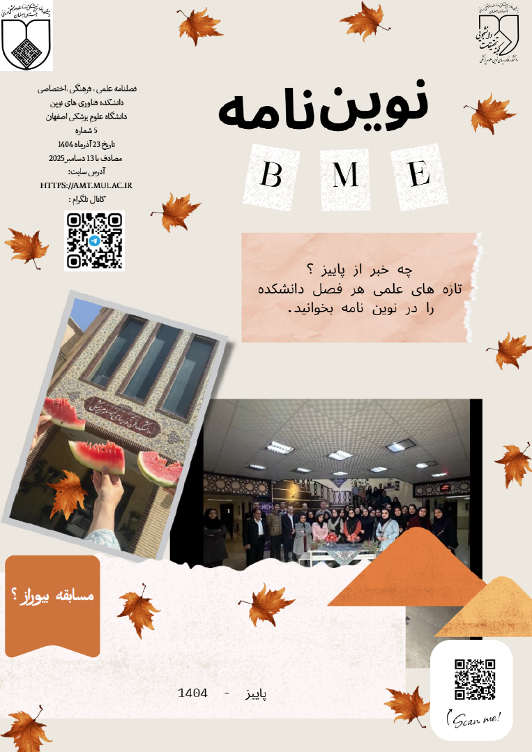 فصل نامه اختصاصی، علمی، فرهنگی، اجتماعی دانشکده فن آوری های نوین پزشکی فصل نامه اختصاصی، علمی، فرهنگی، اجتماعی دانشکده فن آوری های نوین پزشکی دسته بندی اخبار عمومی دانشکده