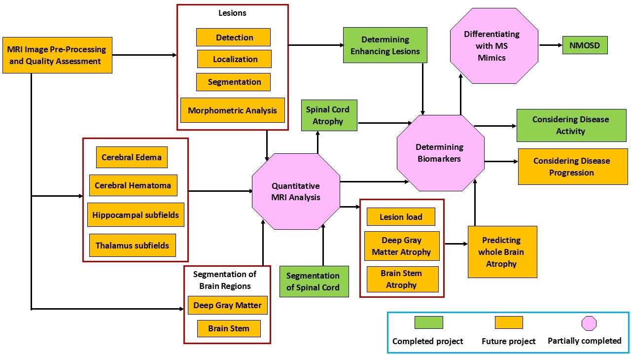 طراحی و توسعه نرمافزارهای کمکتشخیصی پزشکی:(CAD) یکپارچهسازی زنجیره تحلیل تصویر در قالب ابزارهای نیمهخودکار و تمامخودکار برای پشتیبانی از نورولوژیستها و رادیولوژیستها در تشخیص زودهنگام، درجهبندی بیماری و برنامهریزی درمانی.