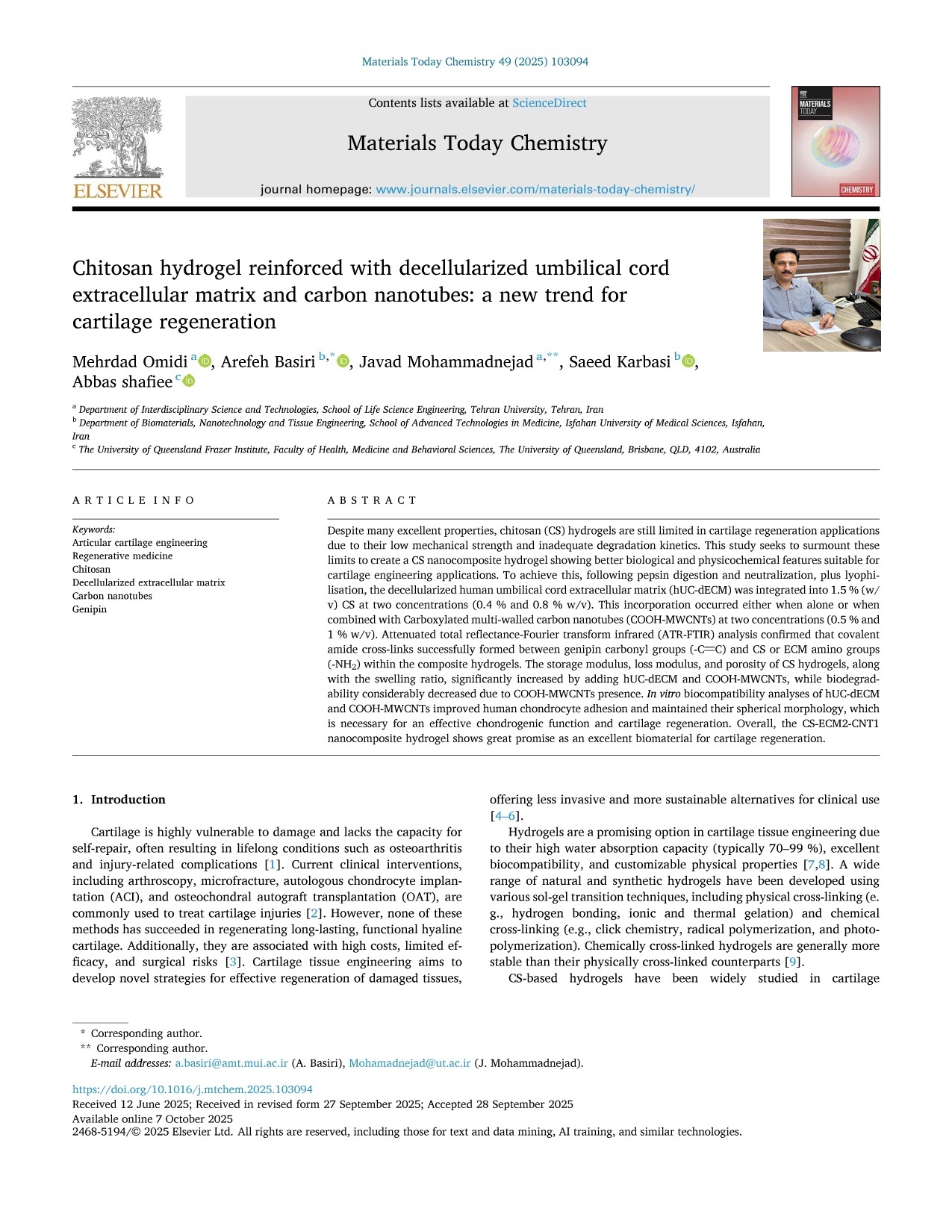 Mehrdad Omidi a , Arefeh Basiri b,* , Javad Mohammadnejad a,**, Saeed Karbasi b ,
